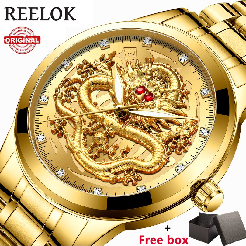 Jual Merek Mewah Pria Naga Emas Jam Tangan Ru Stainless Steel Watch Men Quartz Jamnya Mode Berlian Pria Jam Bisnis Missai